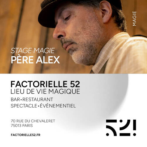 Un stage de magie est organisé au Factorielle 52, animé par Père Alex. Il a présenté son spectacle « Entourloupe(s) » la saison dernière. Avant cela, il avait créé le spectacle de rue « Les Bateleurs », joué dans une caravane-scène qui a tourné dans toute la France. Il a également obtenu le Molière de la meilleure création visuelle avec « Chapitre 13 », et a collaboré avec certains des plus grands magiciens du monde, tels que Victor Vincent, Yann Frisch ou encore Mathieu Stepson.
